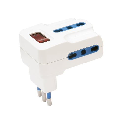 ADATTATORE 3 PRESE UNIVERSALI, SPINA 10A PROT.SOVR.,SALVASPAZIO BIANCO