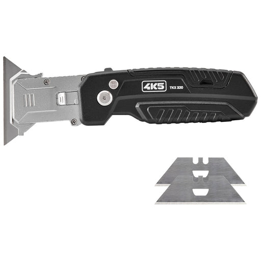 Coltello a serramanico flessibile con lame trapezoidali sostituibili, funzione raschietto integrata e portalame